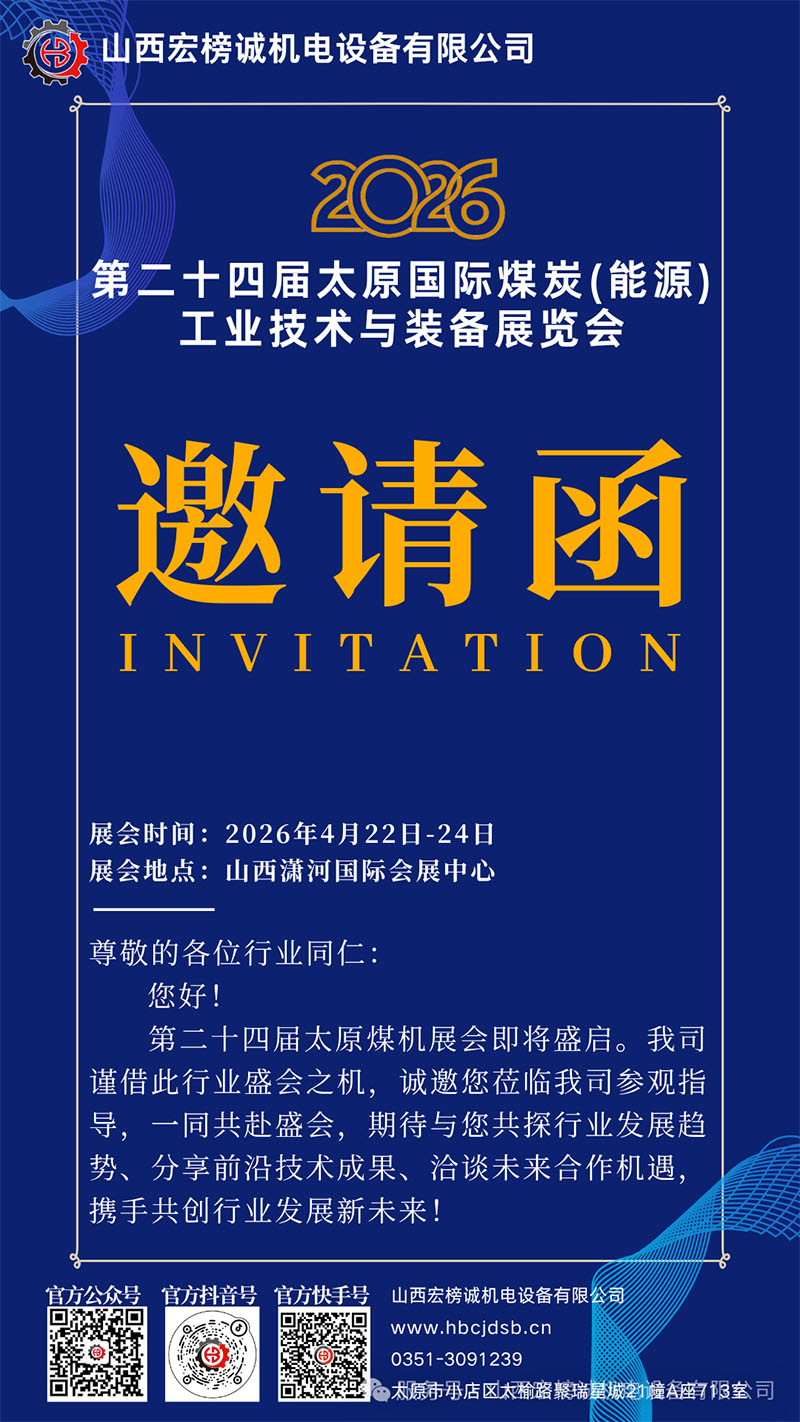 【展会邀请】山西宏榜诚与您相约第二十四届太原煤炭(能源)工业技术与装备展览会!